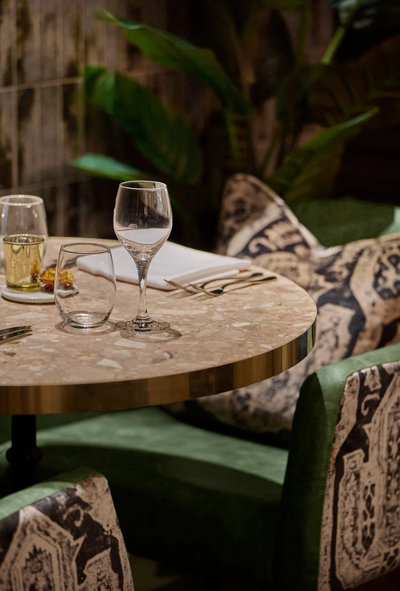 Located within the iconic Queens Hotel in Leeds, the interior of Cinnamon Kitchen is crafted to reflect the quality and theatre of its food. Rich velvets, raw metals and brass finishes create a layered, tactile backdrop, shaped by the building’s Grade II listed status and a tightly controlled programme to ensure a sensitive yet deliverable scheme.